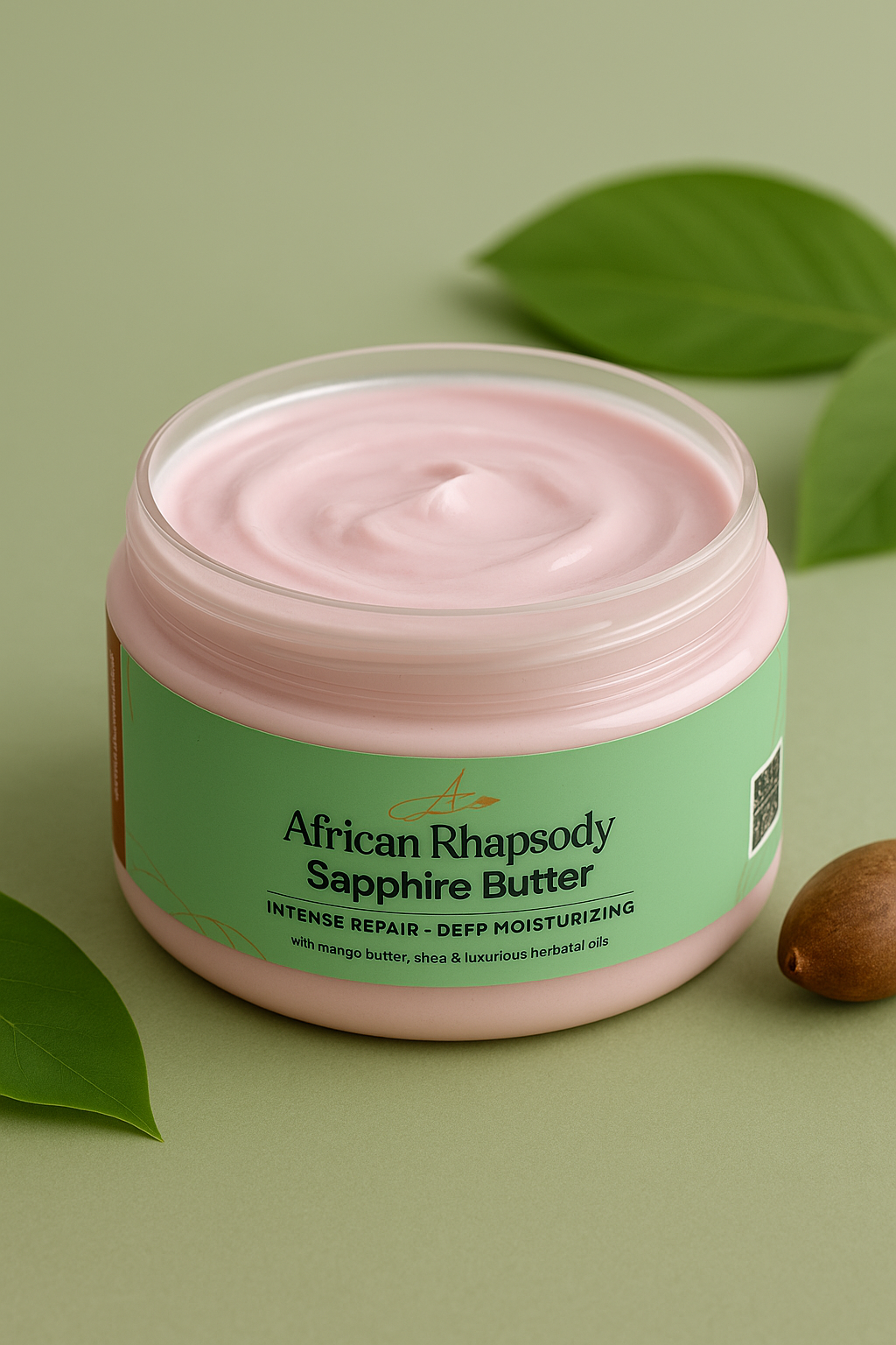 Inspired by Africa’s ancient botanical rituals, Restore Sapphire Butter was crafted for those whose skin has weathered time, dryness, or damage and craves restoration.