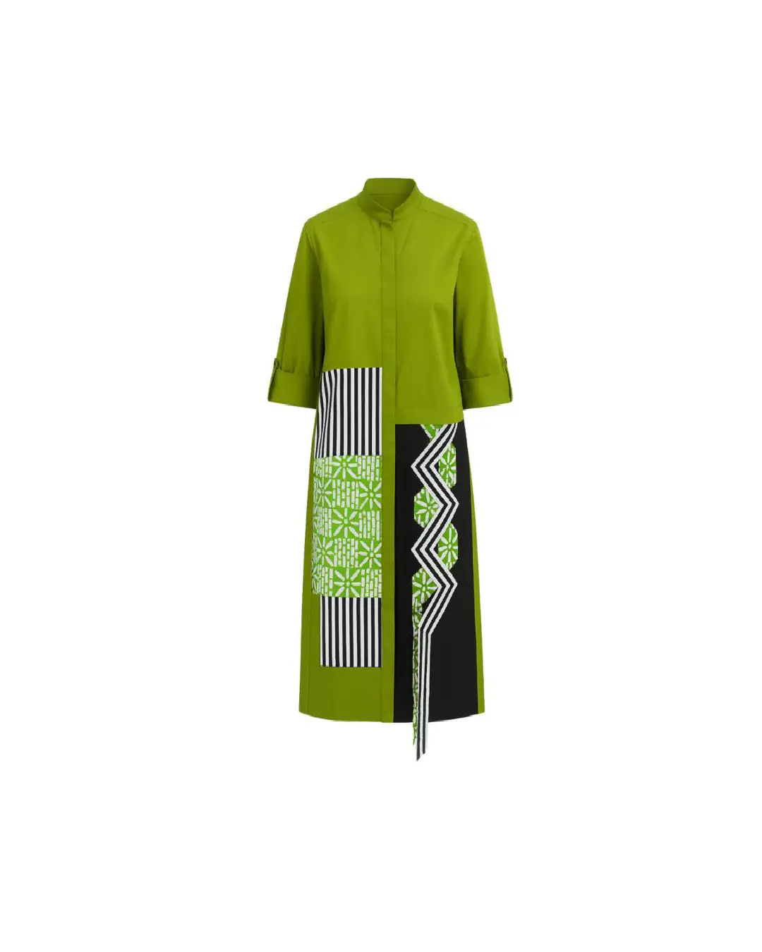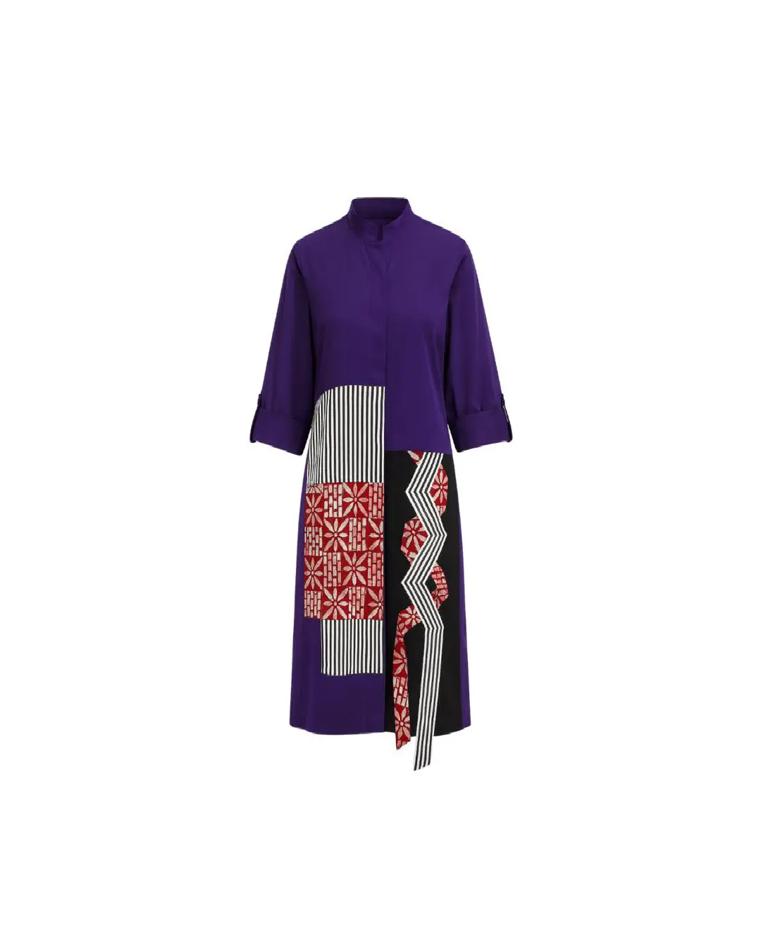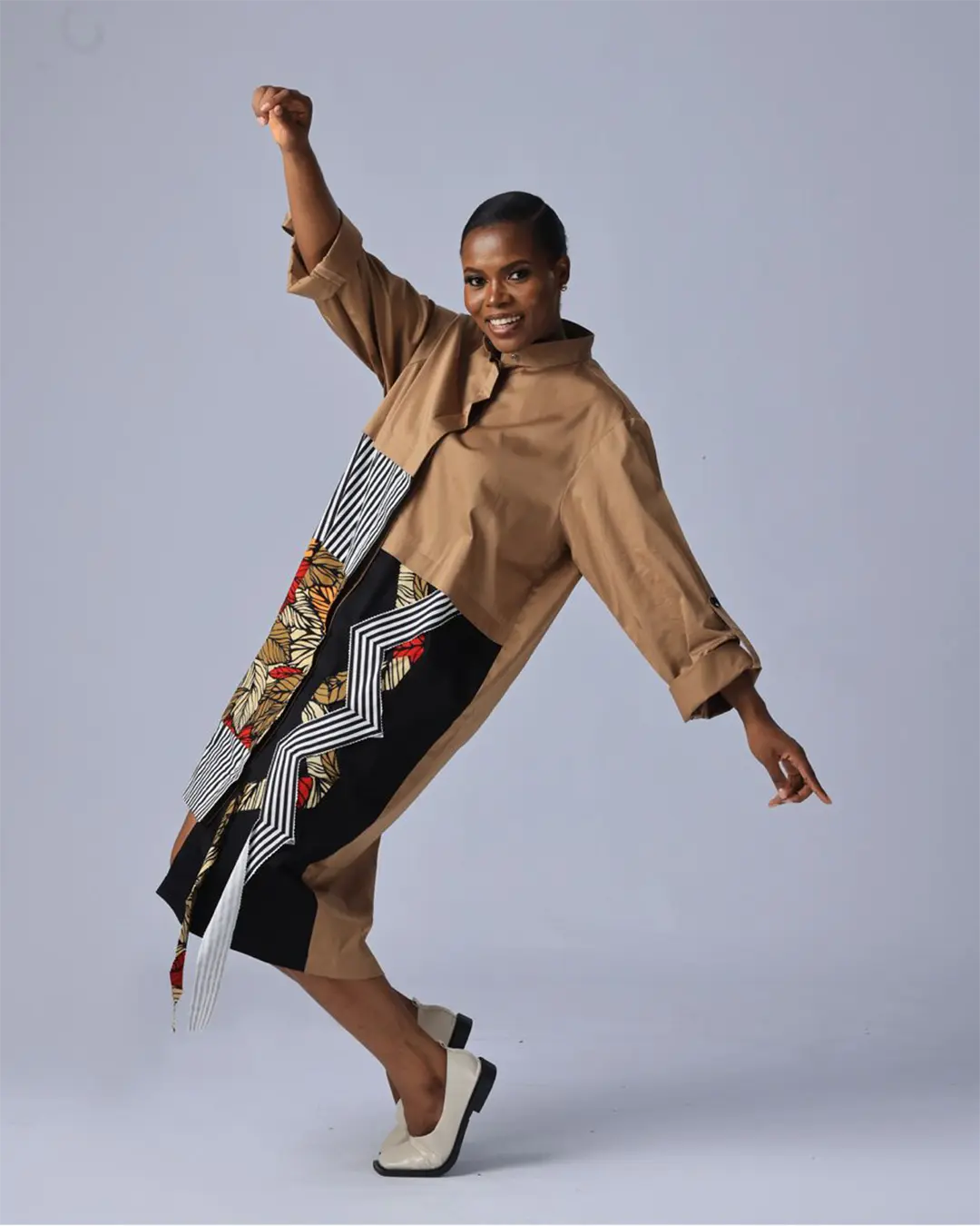 Step into effortless style with the Shero Dress, a modern take on a structured silhouette. Designed with a clean button-down front that stops above the hemline for a relaxed, easy finish, this piece blends form with function beautifully. What truly sets the Shero Dress apart is its uniqueness—no two are alike. Each dress features individually selected African prints and hand-picked cotton fabrics across the front panel and hemline, creating a wearable work of art. From casual days to elevated moments, this dress is your go-to for distinctive, expressive fashion.