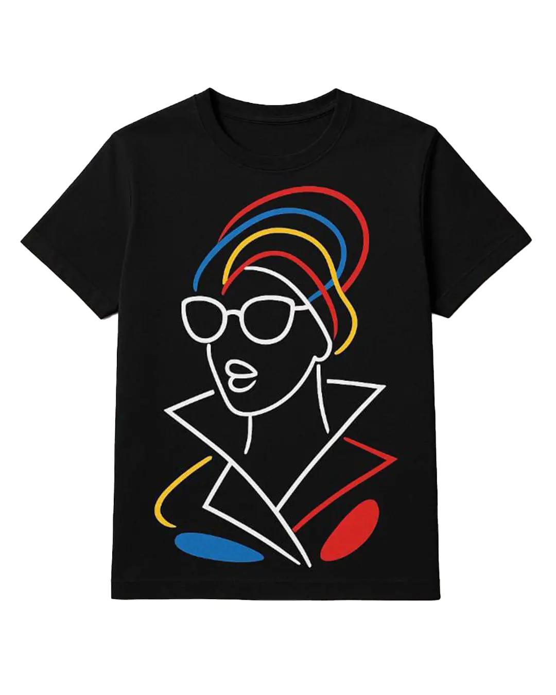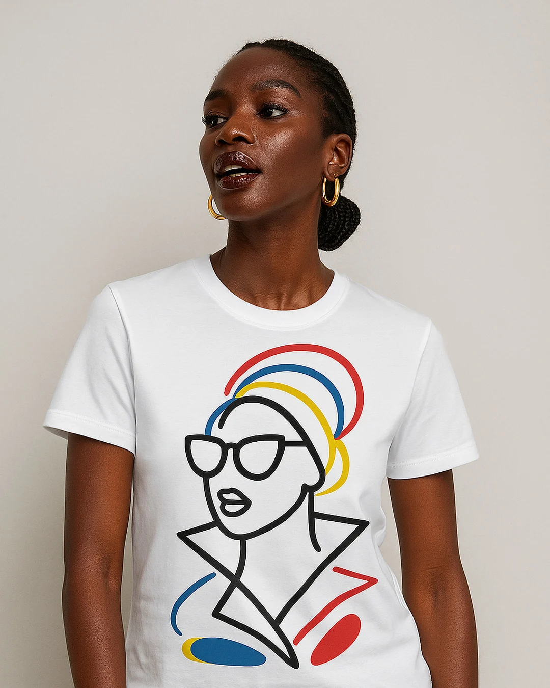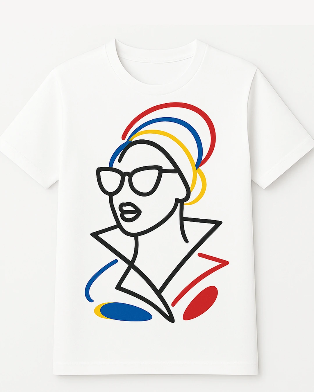 "The Rich Aunt Tee is a quiet statement—an ode to the iconic woman who carries confidence, culture, and elegance with ease. Featuring minimalist line art crowned with a swirl of red, blue, and yellow, the design offers a subtle tribute to the West African gele, a timeless symbol of sophistication and strength.