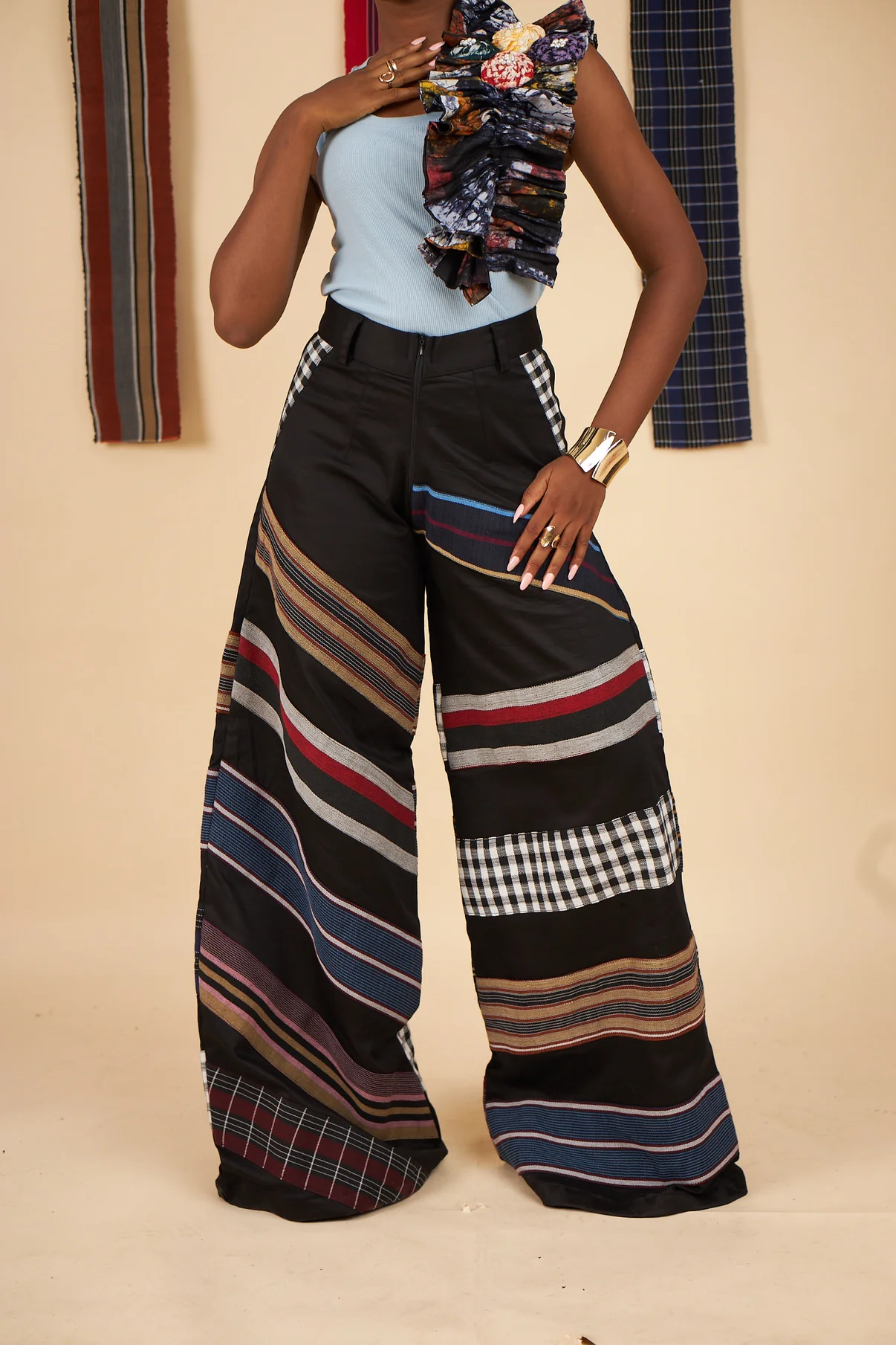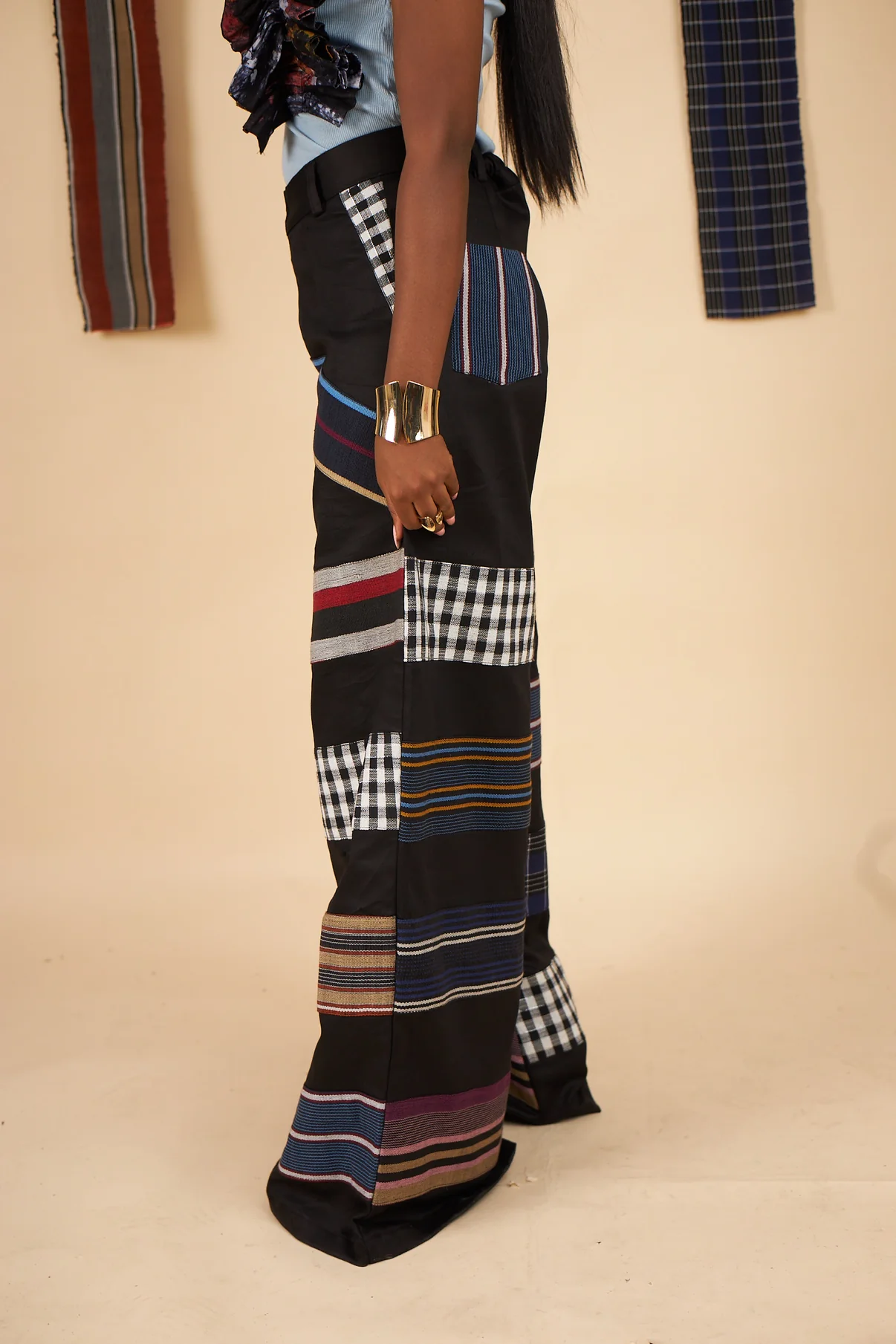 Step outside the ordinary and elevate your style with our Olabisi Aso Oke Pants. Crafted from vibrant patchwork cotton Aso Oke fabric, each pair is unique, bold, and edgy. These statement pants combine luxury with cultural artistry, ensuring you stand out wherever you go.