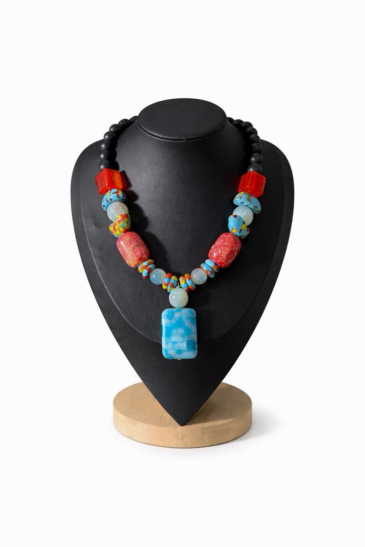 This African gemstone pendant necklace blends natural beauty with modern style. Designed for those who appreciate African jewelry and unique accessories, it offers a refined, eye-catching finish for any look.