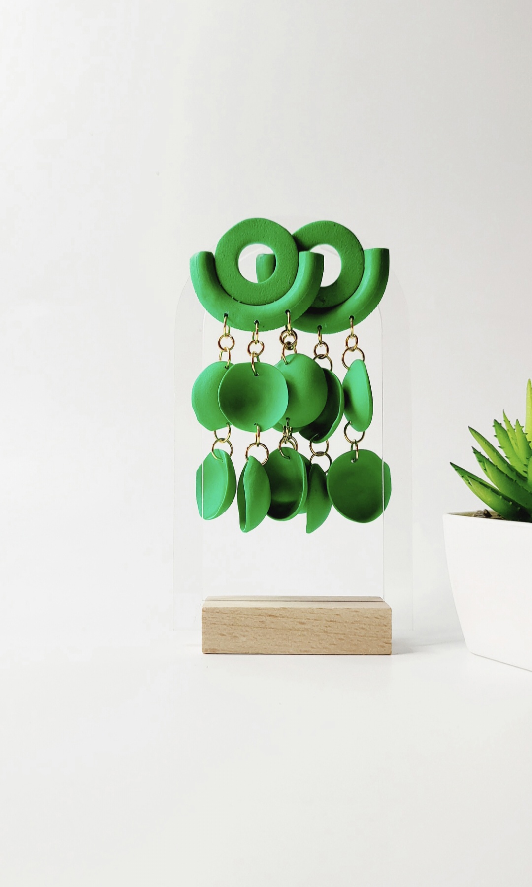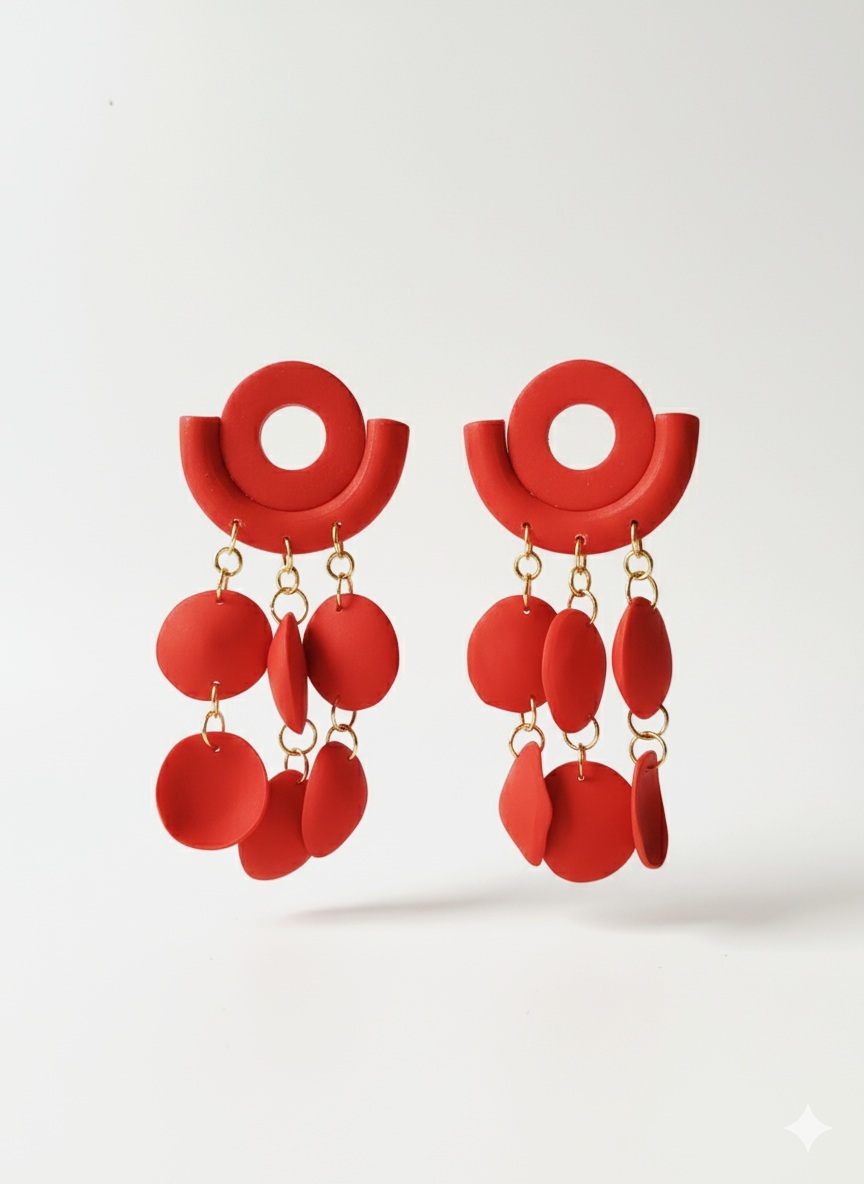 These striking earrings radiate confidence and refined elegance. Their bold design evokes passion, while cascading discs create a mesmerizing rhythm, like silk drifting in the wind. Handcrafted to elevate any outfit with effortless grace. Due to its handmade nature, slight variations may occur.