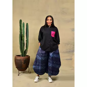 Cotton shirt with gele women baack image and earring trimming