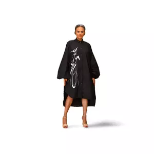 Introducing the Khosi Shirt Dress, a stunning and sophisticated addition to any wardrobe. This cotton shirt dress features dramatic bell sleeves that add a touch of drama and flair to the overall design. The dress is decorated with a beautiful image of a woman, adding an artistic touch to the already impressive design. The Khosi Shirt Dress is perfect for both casual and formal occasions, making it a versatile and stylish option for any event. Made from high-quality cotton, this dress is both comfortable and durable, ensuring that you look and feel your best all day long. Experience the elegance and class of the Khosi Shirt Dress today.