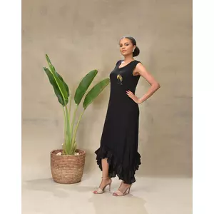 Maxi t-shirt dress with beaded gele woman and ruffle bottom detail