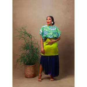 Silk mikado skirt with pleated tulle assymetric detail