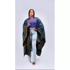 Revamp your fashion game with our Yagana denim and aso oke cape, the ultimate fusion of modern and cultural textiles. This versatile, one-size-fits-all cape adds a touch of flair to any outfit. (Please note: slip not included!) Be bold and pair it with your favorite piece for a truly unique style statement.
